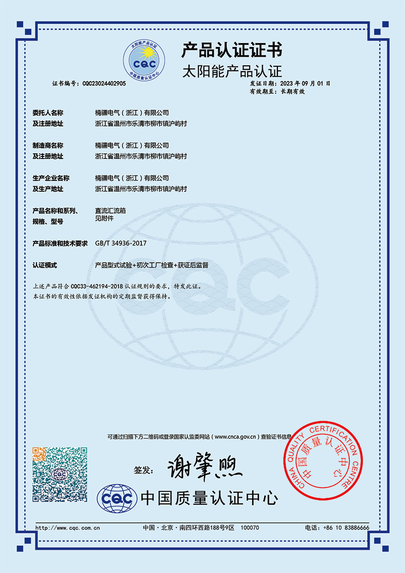 CQC太阳能产品认证证书