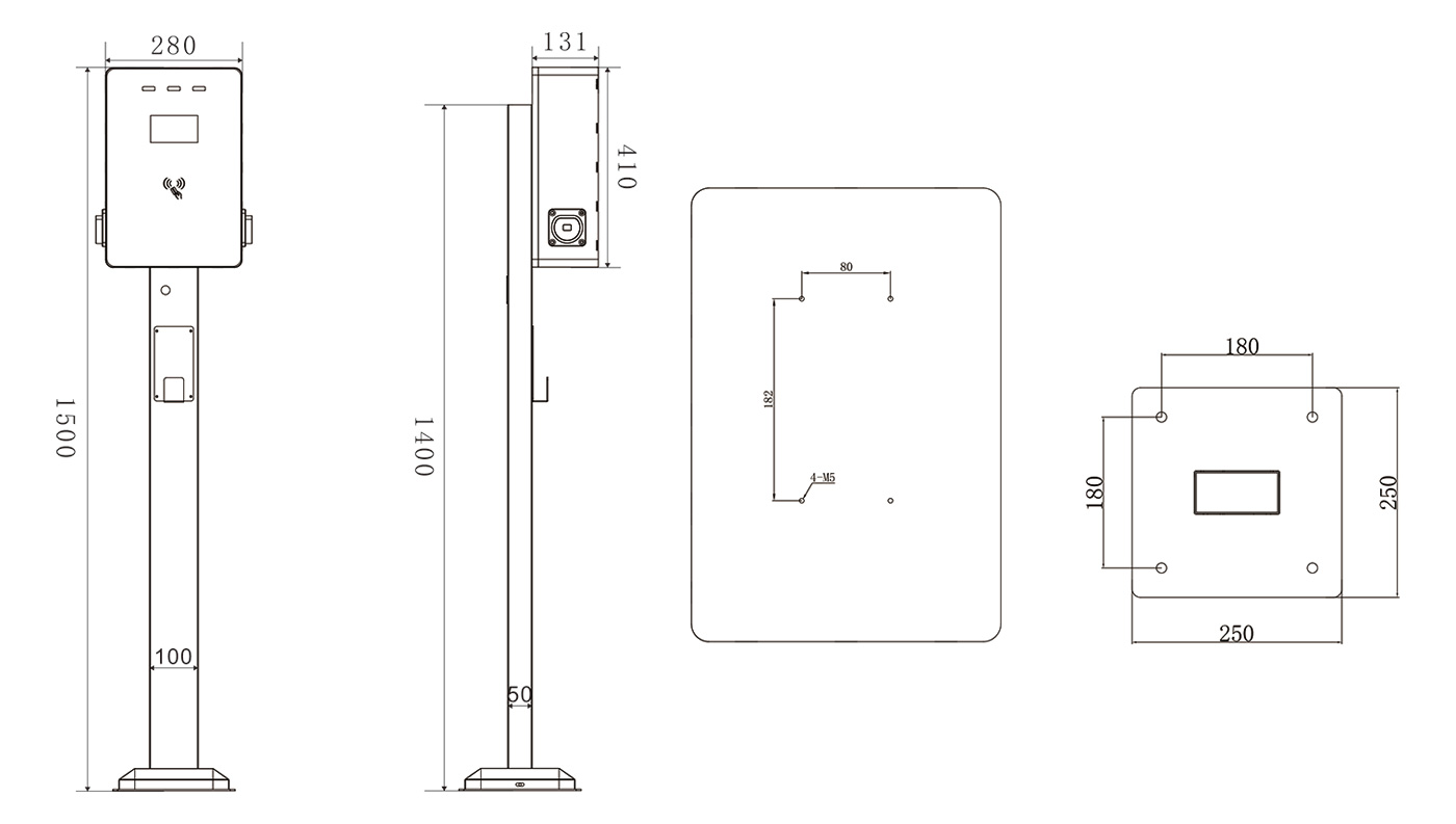 详细规格 产品型号 NJAC-7000-XDS 外观结构 产品属性 钣金版双枪7KW 设备尺寸 410mm*280mm*131mm(L*W*T) 安装方式 地面开孔安装 走线方式 下进下出 线缆长度 5M 电气指标 输入电压 220V±20% 输入频率 50±5HZ 额定功率 2*7KW 输出电流 2*32A 功能设计 人机界面 刷卡、扫码、急停按钮、LED指示灯 通讯接口 支持4G/2G、以太网 安全设计 安规标准 GB/T18487-2015 保护设计 浪涌、过流、过压、漏电、欠压、短路保护 环境指标 使用环境 户内/户外 工作温度 -20℃~50℃ 防护等级 IP54