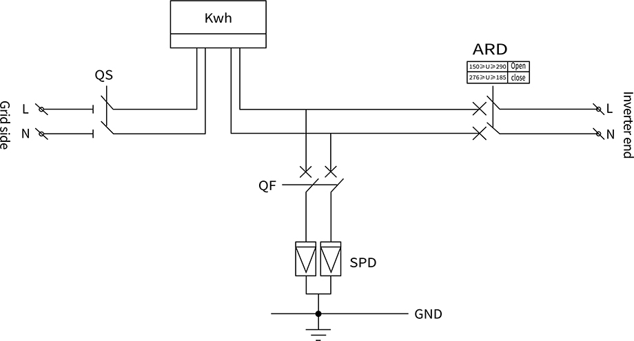 Electrical layout diagram of single-phase AC grid connected box